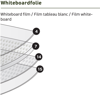 Selbstklebende Folie zum Beschriften mit Whiteboard-Markern, ein Marker ist im Set enthalten