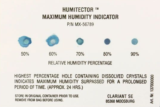Damit lässt sich nach dem Transport oder der Lagerung eindeutig nachweisen, ob zu hohe Feuchtigkeit herrschte.